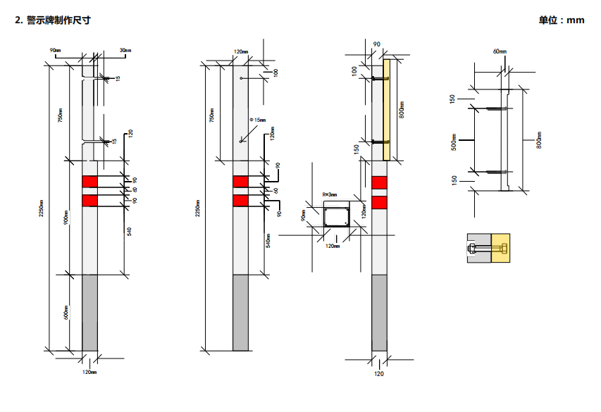 2. 警示柱制作尺寸