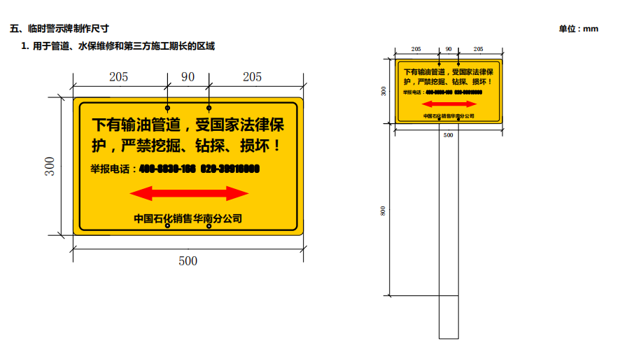 輸油管道線路標(biāo)志牌尺寸