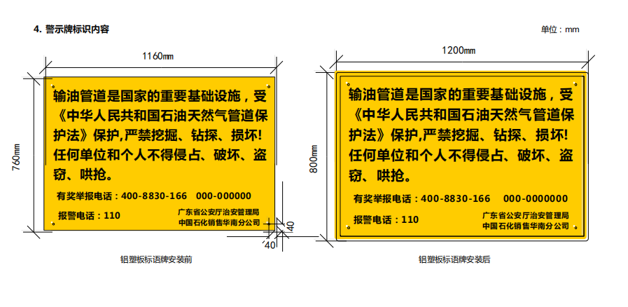 輸油管道線路標(biāo)志牌規(guī)格尺寸,輸油管道線路警示牌圖集