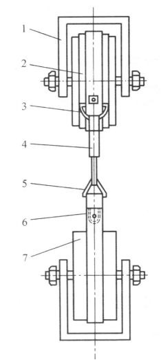 1一夾具;2一安全帶;3—半圓環;4—鉤;5一三角環;6一帶;7一木輪