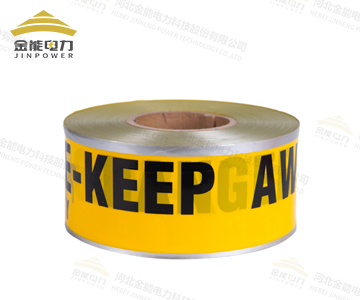可探測地埋警示帶原材料的使用:金能電力的可探測地埋警示帶采用的是高強度、耐老化的PE、PP、OPP高分子材料,色澤鮮艷、醒目,可以長期鋪設在地下50年不腐蝕,不褪色。而縱觀市面上一些其它廠家生產出來的產品,要么就是使用的再生材料,壽命短,沒有韌性,稍微一用力就會斷掉。要么就是在印刷上偷工減料,色澤暗啞,字體很容易被腐蝕。