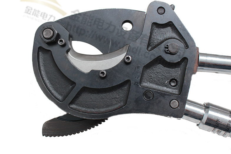 3,按照步驟2方法,打開動刀片,卡住電纜侯,合上動刀片,連續往復抬壓動手柄,直至電纜剪斷,