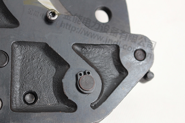 2,將動手柄想下壓與止退扭碰撞,脫開內部各鎖緊機構,使動刀片開合自如。